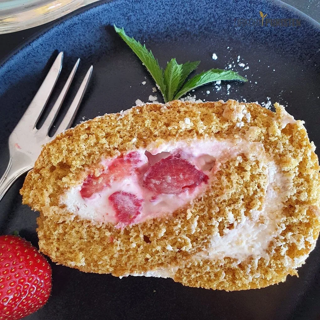 Heute habe ich eine schöne Biskuitrolle mit Einkorn für dich:
