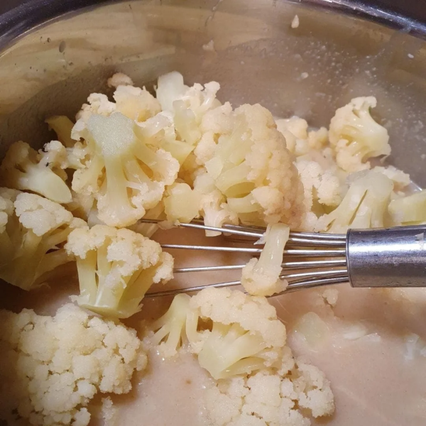 - Die Blumenkohlröschen in die Brühe geben und weiterköcheln lassen, bis der Blumenkohl weich ist. Dies dauert in der Regel etwa 15-20 Minuten.
