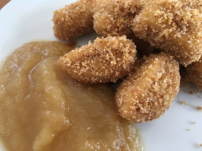 Während die Suppe vor sich hinköchelte, hatte ich Zeit mich den Quarkknödel zu widmen. Ratz-Fatz war der Teig hergestellt. Angesichts der weichen Teigmasse habe ich aber beschlossen kleine Quarknockerl abzustechen, anstatt große Knödel zu formen. Ich war überrascht, wie schnell das ging. Nach der kurzen Garzeit im heißen Wasser habe ich sie nur noch in gerösteten Semmelbrösel mit Zucker geschwenkt – fertig. Das Resultat war perfekt: Meine Kinder haben die Quark-Nockerl komplett weg gefuttert und gefragt, warum ich die nicht schon früher gemacht habe…Das Rezept läuft unter der Rubrik: „Vollkorn elegant versteckt“