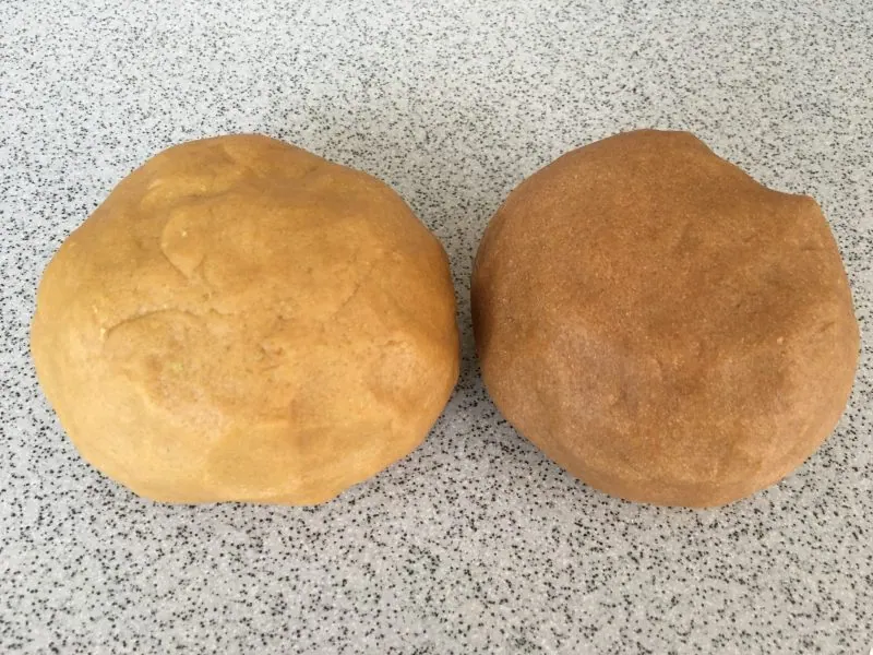 Bild mit Teigkugeln: links Einkorn / rechts Emmer