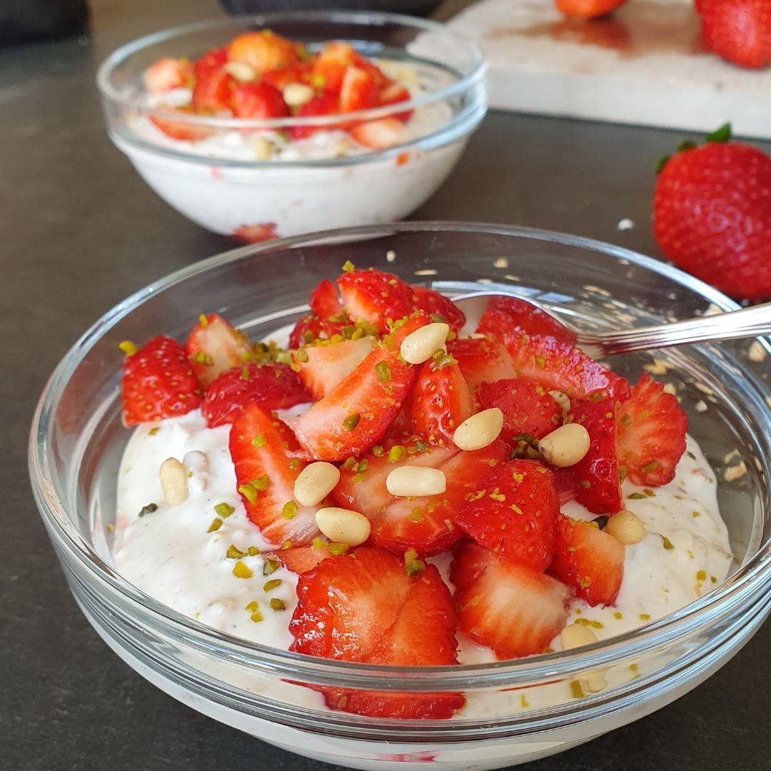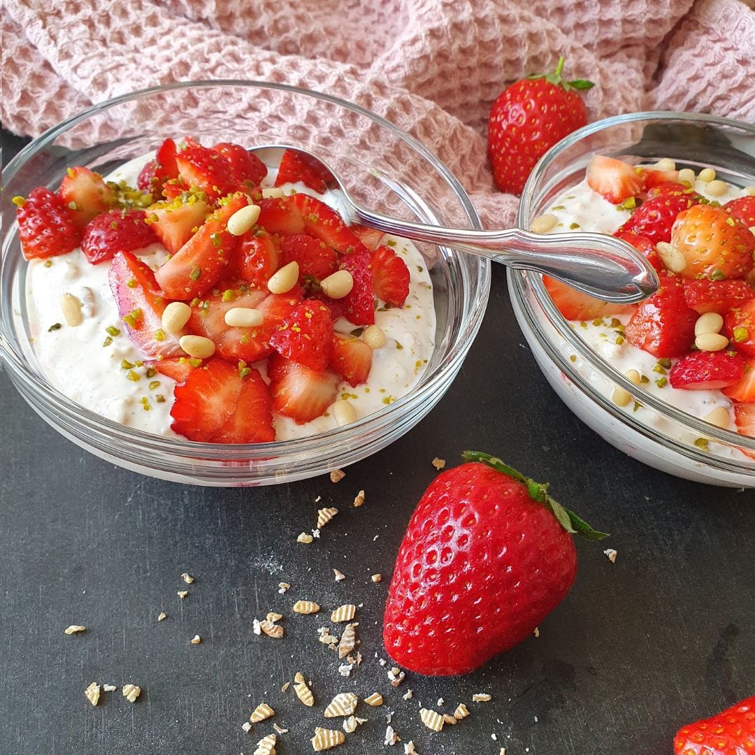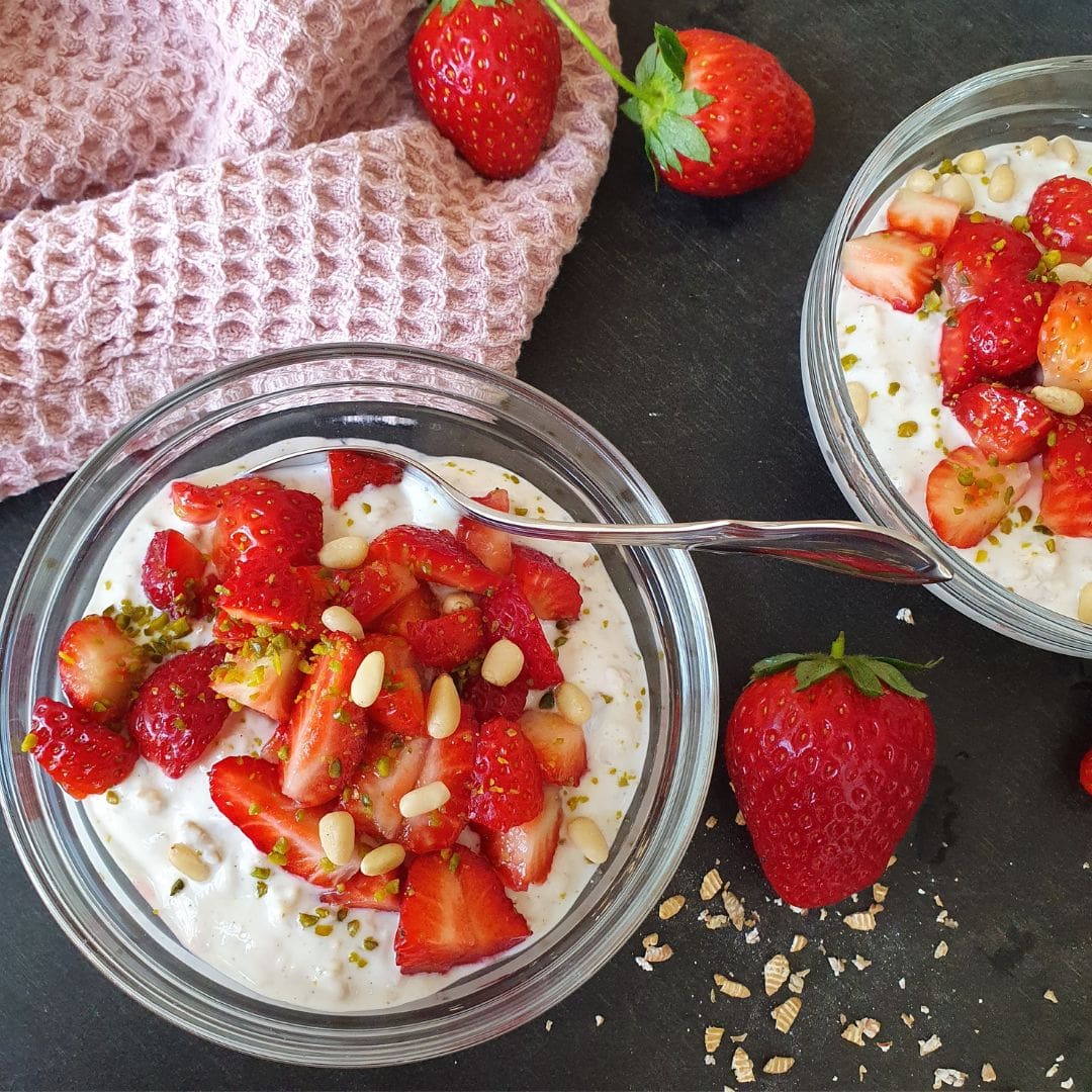 Bereite es am Abend zuvor zu, und genieße am Morgen ein köstliches, selbstgemachtes Frühstück, das dir die perfekte Grundlage für einen erfolgreichen Tag bietet. Mit den süßen Erdbeeren und dem knusprigen Topping aus Pistazien, Chiasamen oder Kürbiskernen wird dieses Frühstück zu einem kleinen Fest für die Sinne und eine wahre Wohltat für deinen Körper.