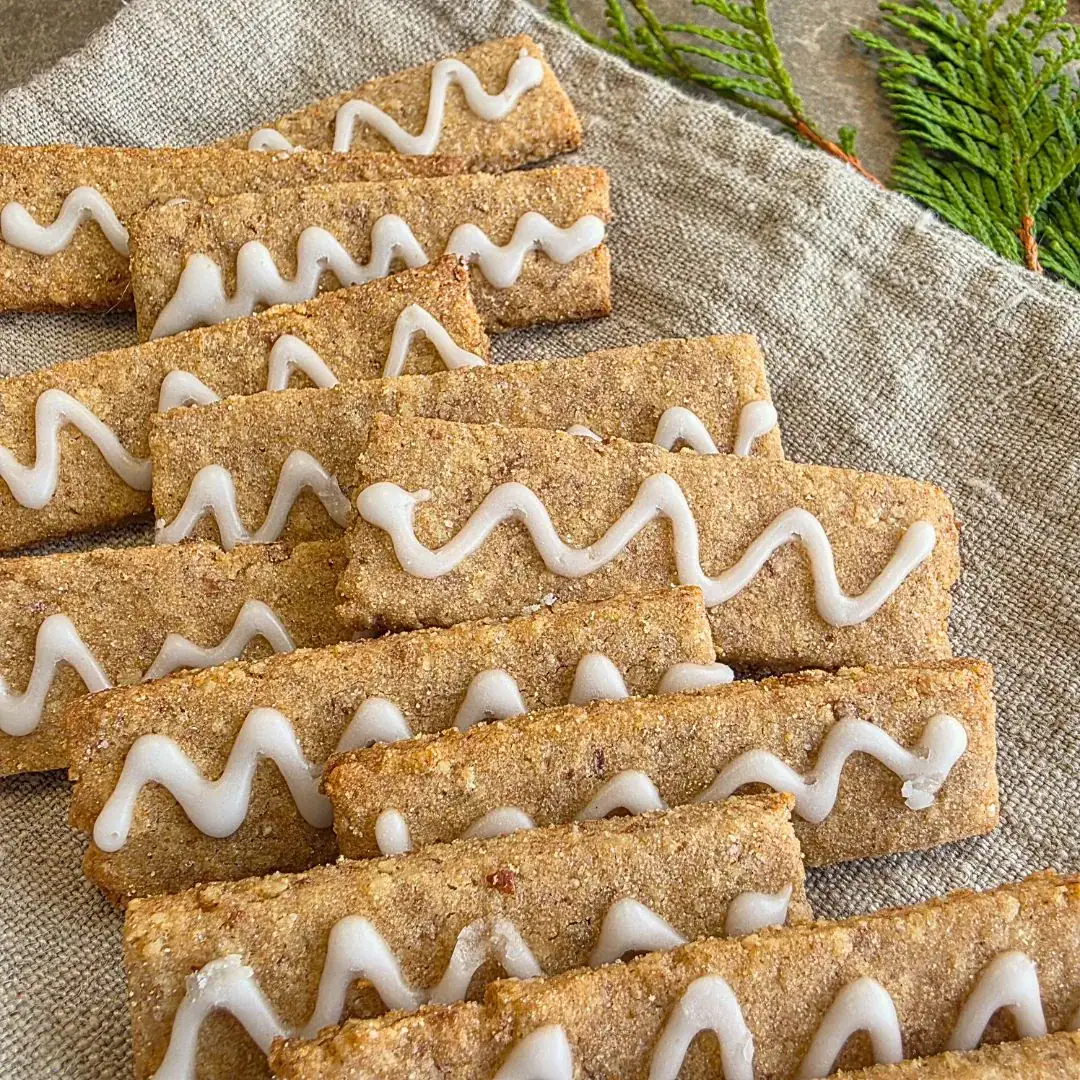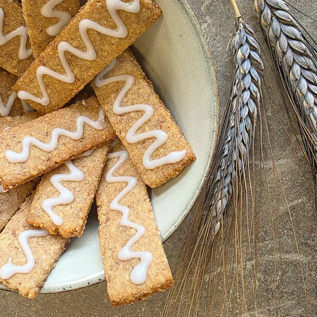 Gerade für Familien sind unsere Emmerstangen ideal: Der Teig ist unkompliziert, die Stangen müssen nicht aufwendig geformt werden und können nach Lust und Laune verziert werden. Kinder lieben es, die Teigstreifen auszuschneiden und später mit Schokolade und Zuckerguss kreativ zu werden und Erwachsene freuen sich über ein Rezept, das ohne Stress gelingt und trotzdem herrlich aromatisch ist.