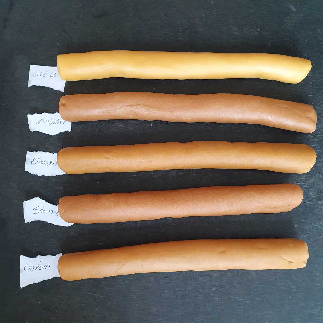 - auf leicht bemehlter Fläche aus jedem Teigstück eine 2-3 cm dicke Rolle formen und mit einem Messer in ca. 2-3 lange Stücke schneiden
