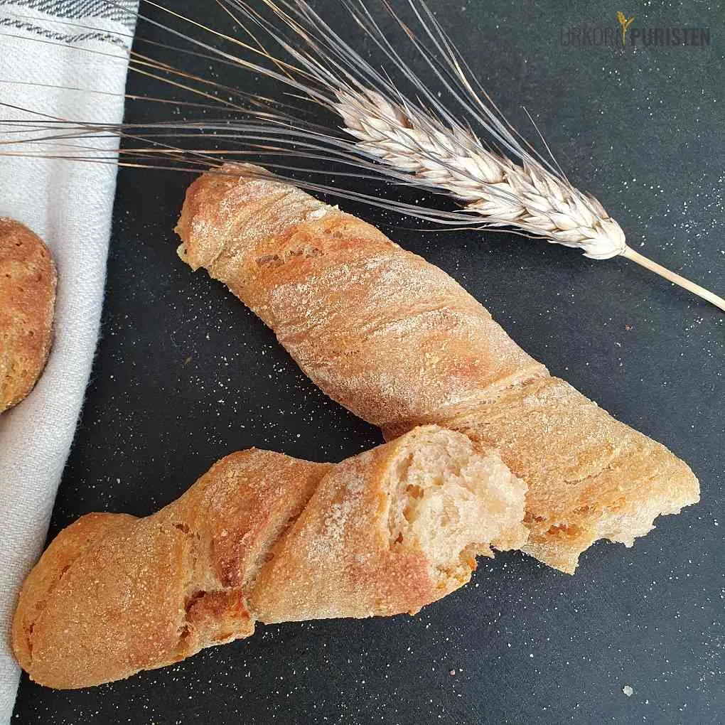 Die Vorlage für dieses Rezept der Khorasan Weißweinstangen stimmt aus dem Backbuch „Gesundheitsbewusst Backen“ vom Urkorn-Revolutionär Siegfried Brenneis. Das Ur-Rezept für die Kamut-Weißwein-Grissini haben wir nur dahingehend abgeändert, dass wir anstelle dem angegebenen hellen Kamut-Typenmehl unser ultrafein pulverisiertes und nährstoffreiches Khorasan Vollkornmehl verwendet haben. Dadurch ist ein 100% Vollkornbrot aus dem Urgetreide Khorasan entstanden. Das Brot macht geschmacklich richtig Spass und die gesundheitlichen Vorzüge wurden noch weiter maximiert. Der Gehalt an Mineralstoffen, Vitaminen, Spurenelemente und Ballaststoffen, die sich vor allem in den Randschichten des Getreidekorns befinden, erhöht sich dadurch extrem.
