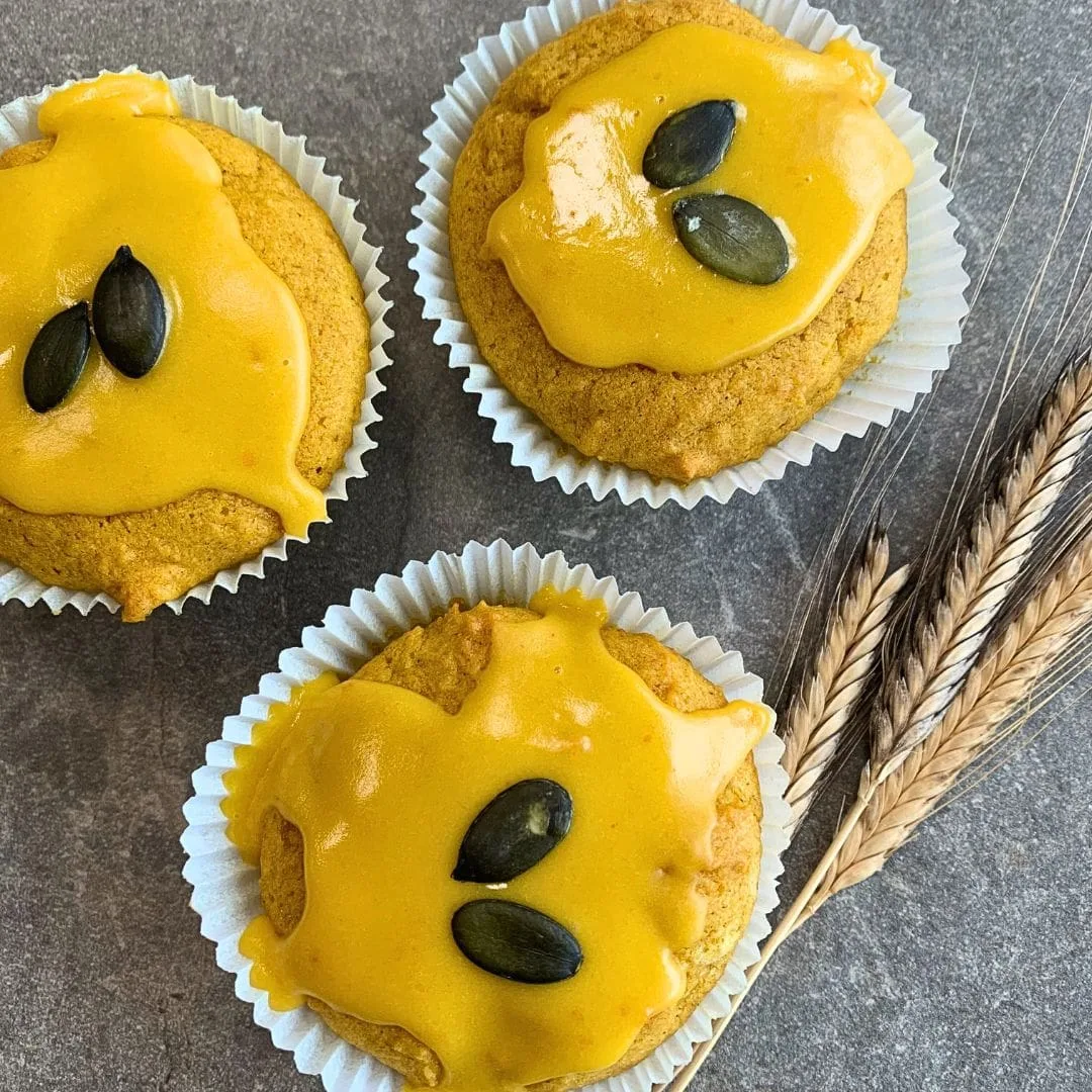 Wir haben uns für einen Glasur aus etwas Kürbispüree, Puderzucker und wenig Apfelsaft entschieden und die Muffins und Donats in ein herbstliches gelb-orange gekleidet