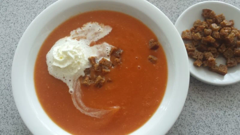 - Nach 30 min den Kürbis und die Kartoffel aus dem Ofen nehmen (muss weich sein) und mixen/pürieren.