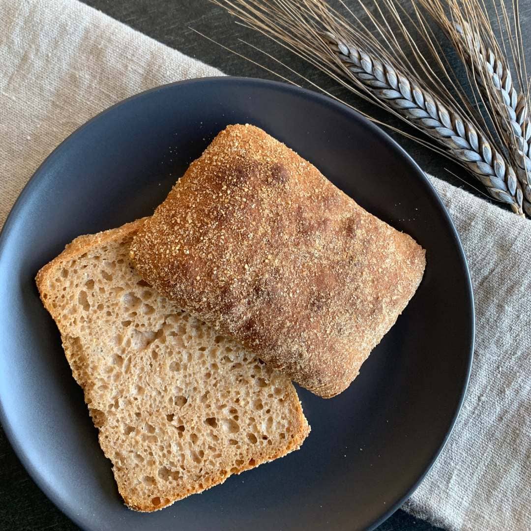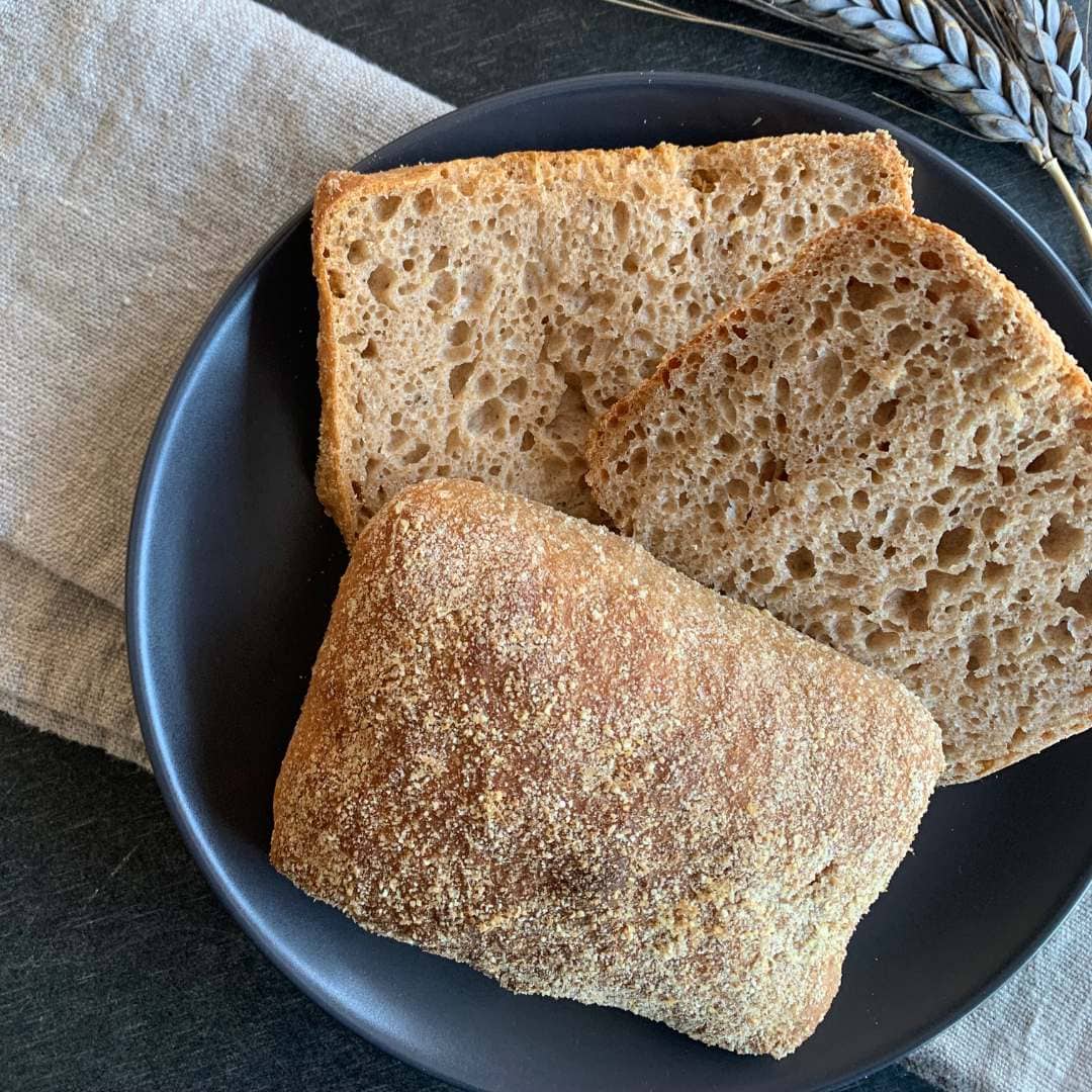 kleine, luftig-leichte Ciabattas aus Emmer, Khorasan und Dinkel, die in unter 3 Stunden auf dem Tisch stehen können. Dank der Kombination von hochwertigem Urkornvollkornmehl und einem Vorteig mit hellem Dinkelmehl bekommt der Teig Stabilität und Luftigkeit – ganz ohne künstliche Zusatzstoffe.