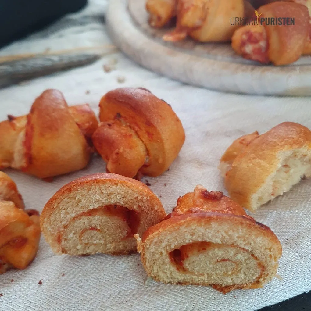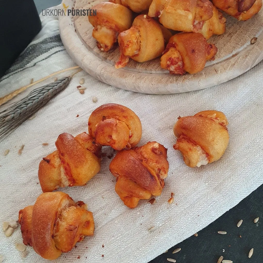 Heute habe ich dir wieder ein köstliches Rezept für Mini Pizzahörnchen mit Urkorn mitgebracht, das sowohl gesund als auch lecker ist. Das Rezept ist recht einfach und ist für ca. 30 kleine Mini-Pizzahörnchen ausgelegt. Es lässt sich ganz einfach zubereiten und ist ein wunderbarer Urkorn-Snack für die ganze Familie. Als kleiner Snack für Kindergarten, Schule oder Arbeit oder ganz entspannt abends zu einem Gläschen Wein oder Bier. Dank des verwendeten Urkorn Vollkornmehl sind sie nicht nur lecker, sondern auch gesund.