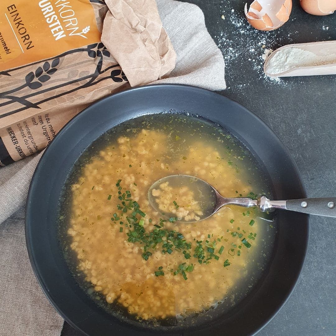 Die Riebelesuppe mit Einkorn Vollkornmehl ist nicht nur eine köstliche Mahlzeit, sondern auch eine perfekte Option für diejenigen, die nach einer einfachen, gesunden und schnellen Zubereitung suchen. Mit diesem kinderfreundlichen Rezept zauberst du im Handumdrehen eine leckere Suppe, die Groß und Klein gleichermaßen begeistern wird. Zu Recht können wir behaupten, dass dies die schnellste Suppe der Welt ist.