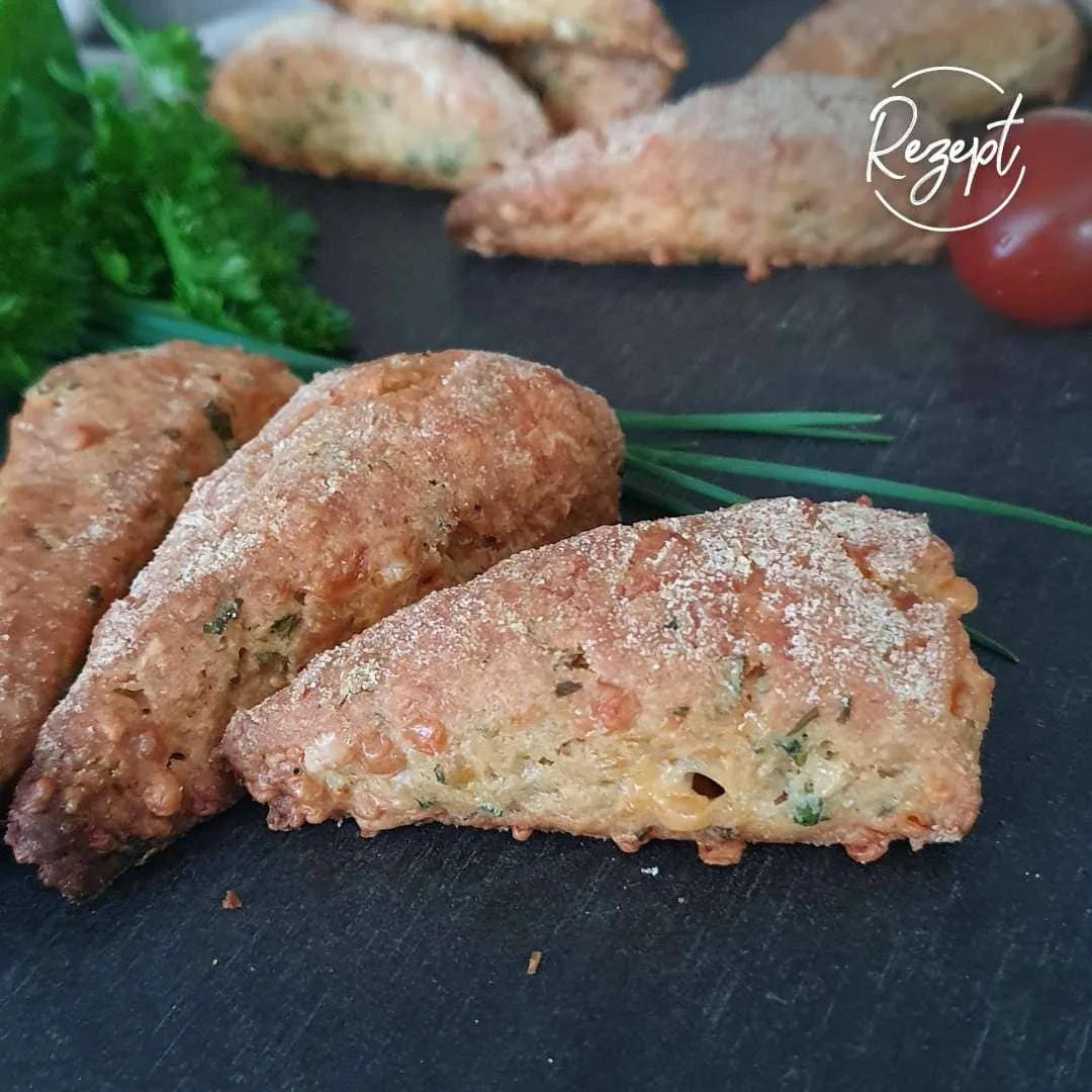 - Den geriebenen Emmentaler und den fein geschnittenen Schnittlauch unter die Mehlmischung geben.