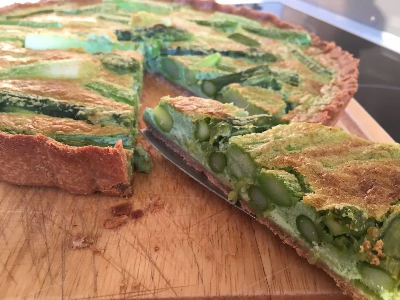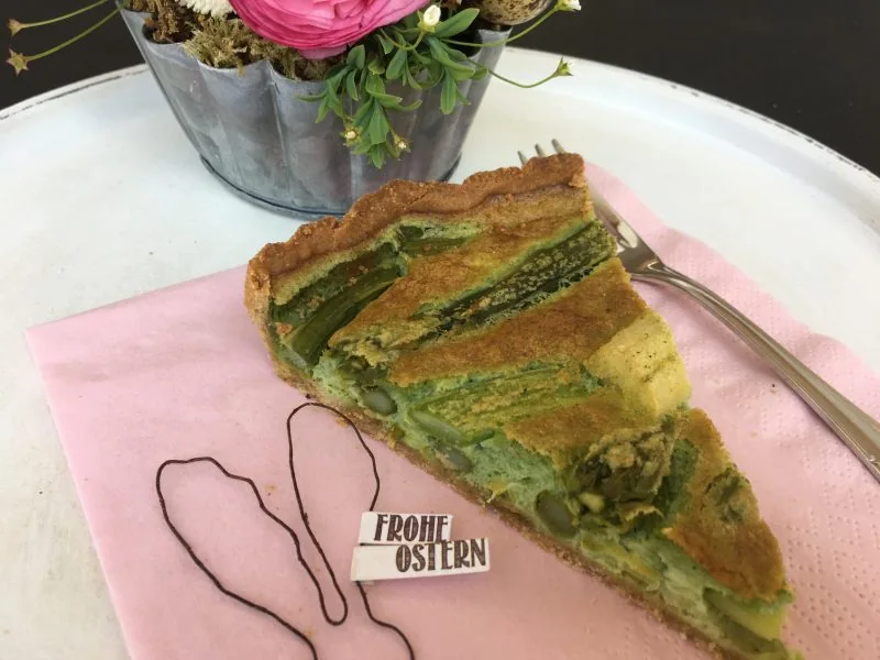 endlich wieder Spargelzeit! Spargel ist eine wahre Königin und – egal ob grün oder weiß – einfach köstlich. Ich kaufe den Spargel immer direkt vom Erzeuger an einem der vielen kleinen Ständchen die bei uns während der Spargelzeit in fast jeder Ortschaft stehen. Dort gibt es eine riesen Auswahl an dicken, dünnen, grünen oder weißen Spargel, Bruchspargel oder Spargelköpfe… und ich kaufe immer zu viel ein, so dass es nach einem Kauf immer 3 Tage hintereinander Spargel gibt – was übrigens keiner von uns schlimm findet. Der weiße Spargel geht oft eine Liaison mit Einkorn-Flädle ein (schmeckt übrigens Bombe). Der grüne Spargel harmoniert prima zu Pasta oder kommt wie in diesem Rezept in einer Spargel-Quiche mit Emmer ganz groß raus.