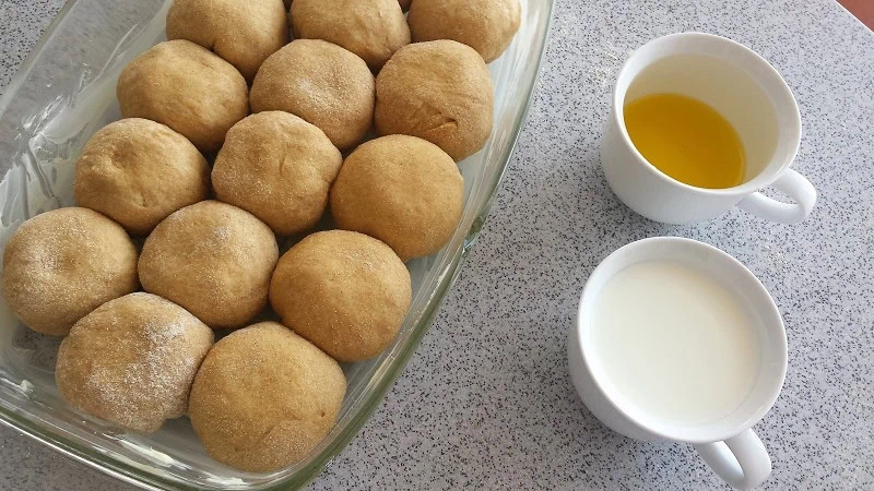 - 2 Stunden bevor du die Dampfnudeln backen willst, holst du den Teig aus dem Kühlschrank und lässt ihn ca. 1 Stunde aklimatisieren