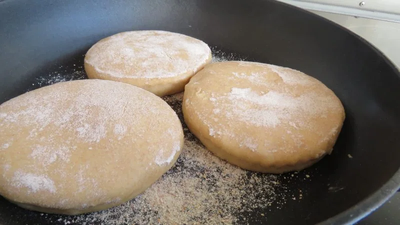 - leg die Toasties in die Pfanne (je nach Größe passen 3-5 Stück hinein) und backe diese von jeder Seite ca. 4 Minuten goldbraun