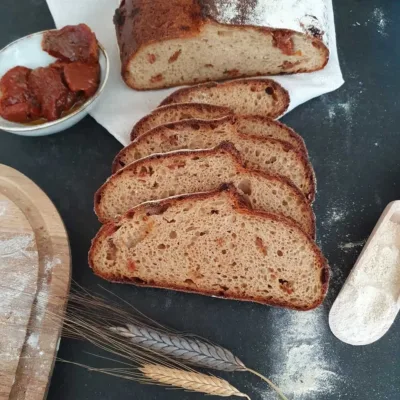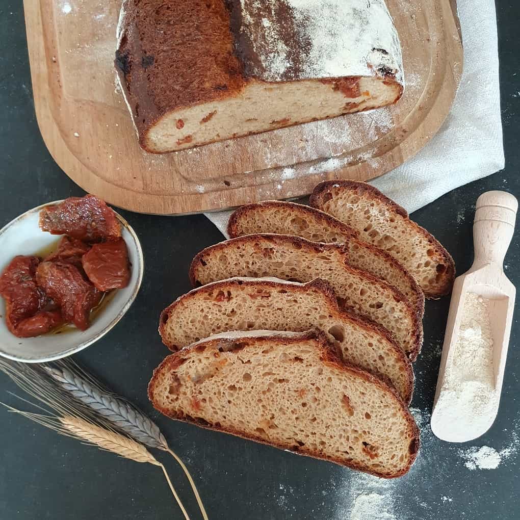 Für die sommerliche Note haben wir in Öl eingelegte getrocknete Tomaten verwendet. Sie geben dem Urkornbrot Sommer eine fruchtige Süße und eine intensive Aromatik, die perfekt mit den Urkornsorten harmoniert.