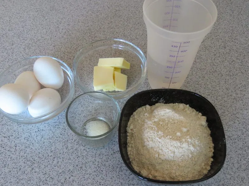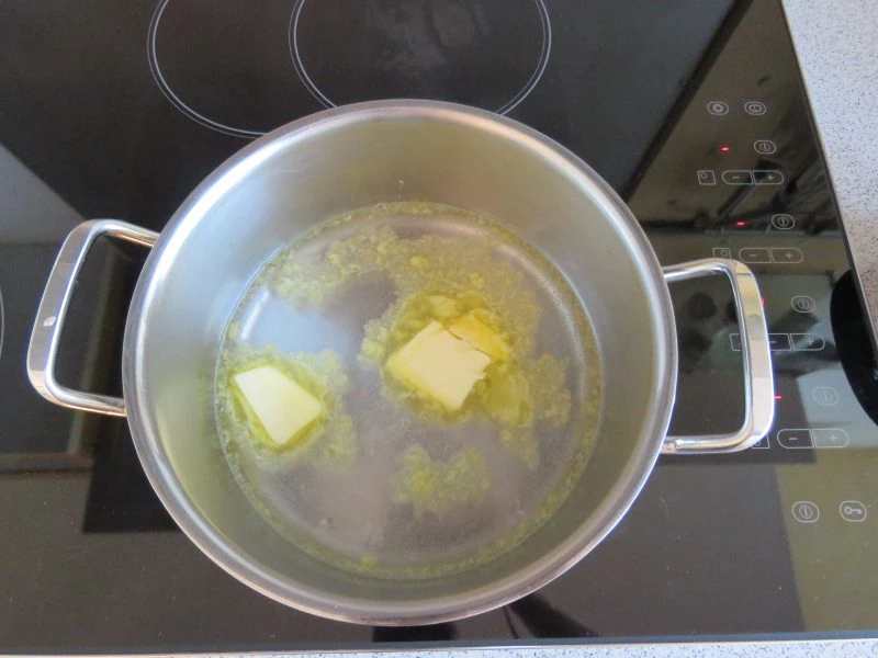 - Das Wasser mit Butter und Salz in einen Topf geben und erhitzen.