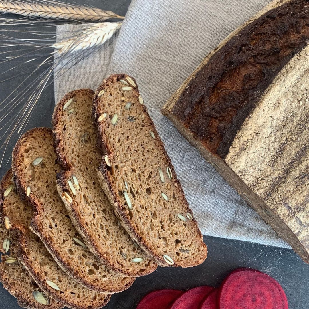 Für dieses Rezept habe ich eine bunte und geschmacklich spannende Kombination gewählt: Rote Bete, Apfelmus und Kürbiskerne. Das Ergebnis ist ein wunderbar saftiges Brot mit einer kräftigen Farbe, einem leicht erdig-süßlichen Aroma und einem herrlich knusprigen Biss. Es schmeckt fantastisch zu Käse, Frischkäse – oder ganz pur mit etwas Butter.