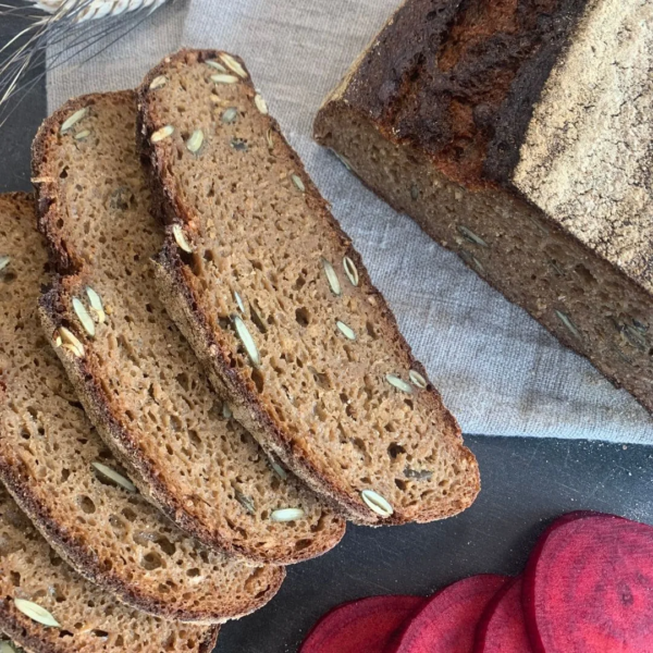 Dieses Brot eignet sich auch hervorragend zum Einfrieren. Einfach in Scheiben schneiden, einfrieren und bei Bedarf toasten oder auftauen – so hast du immer ein Stück Urkorn-Genuss zur Hand!